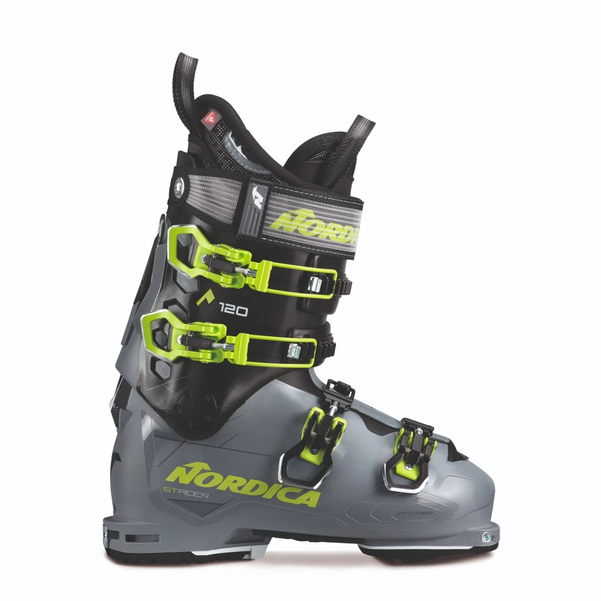 With a thirst for exploring the entire mountain, Nordica’s Strider 120 DYN embraces the toughest terrain. Built around a versatile 100mm last, it sports an aggressive flex just slightly more forgiving than the Strider Pro 130 DYN. Its alpine hike mechanism affords a generous 46° range of motion to ensure you can venture uphill with ease. Yet the boot truly shines when the mechanism is locked-out in ski mode, allowing its fully intact spine to provide exceptional power and response for the descent. For a personalized fit, its lightweight shell and liner can be fully customized. Primaloft insulation keeps feet warm and dry. And for additional versatility, the boot features Dynafit inserts and soles that sport a unique Michelin tread that maximizes traction, durability, and performance. Whether traveling uphill or down, the Strider 120 DYN gives you the performance you need to go wherever your heart desires.